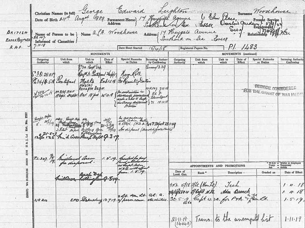 1919 Nov 1. 2nd Lt (hon Lt) relinquishes his commission in RAF on ceasing to be employed