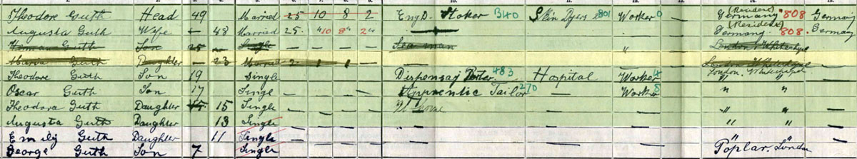 His father seems to have died a John G T Guth in Mile End in 1922, and his mother as Augusta J W Guth in Mile End in 1923